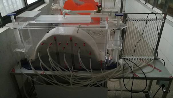 实验室结合水利工程学科的研究方向,建立了具有特色的冰水力学、工程流体力学和水工水力模型实验研究基地。实验室拥有800平方米的水工模型试验大厅,具备流量为960m3/h的循环水系统,拥有水工水力模型试验的流量控制系统、尾水位控制系统及浪高仪、声学多普勒流速仪(ADV)、自动跟踪水位仪、智能流速仪、压力传感器等高精度的量测仪器设备,以支撑学科特色建设。结合水土保持和水资源学科研究方向,拥有人工自动降雨系统、变坡钢槽式径流小区、水土流失监测等仪器设备,为相关教学科研工作服务。