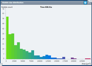 测量结果可得到:刚形成泡沫后,每平方毫米的泡沫数;平均泡沫尺寸和标准偏差以及泡沫半径;连续测量后输出泡沫尺寸直方图;通过记录所有泡沫尺寸参数随时间变化;半衰期泡沫数量等。